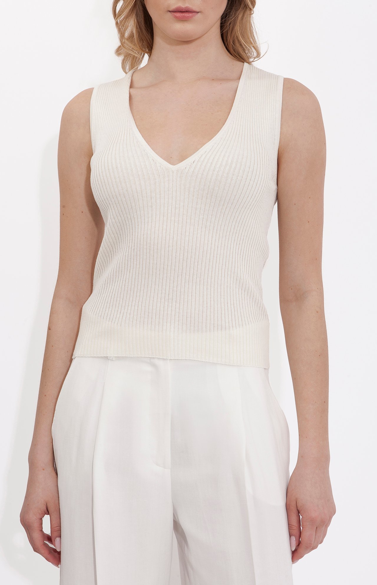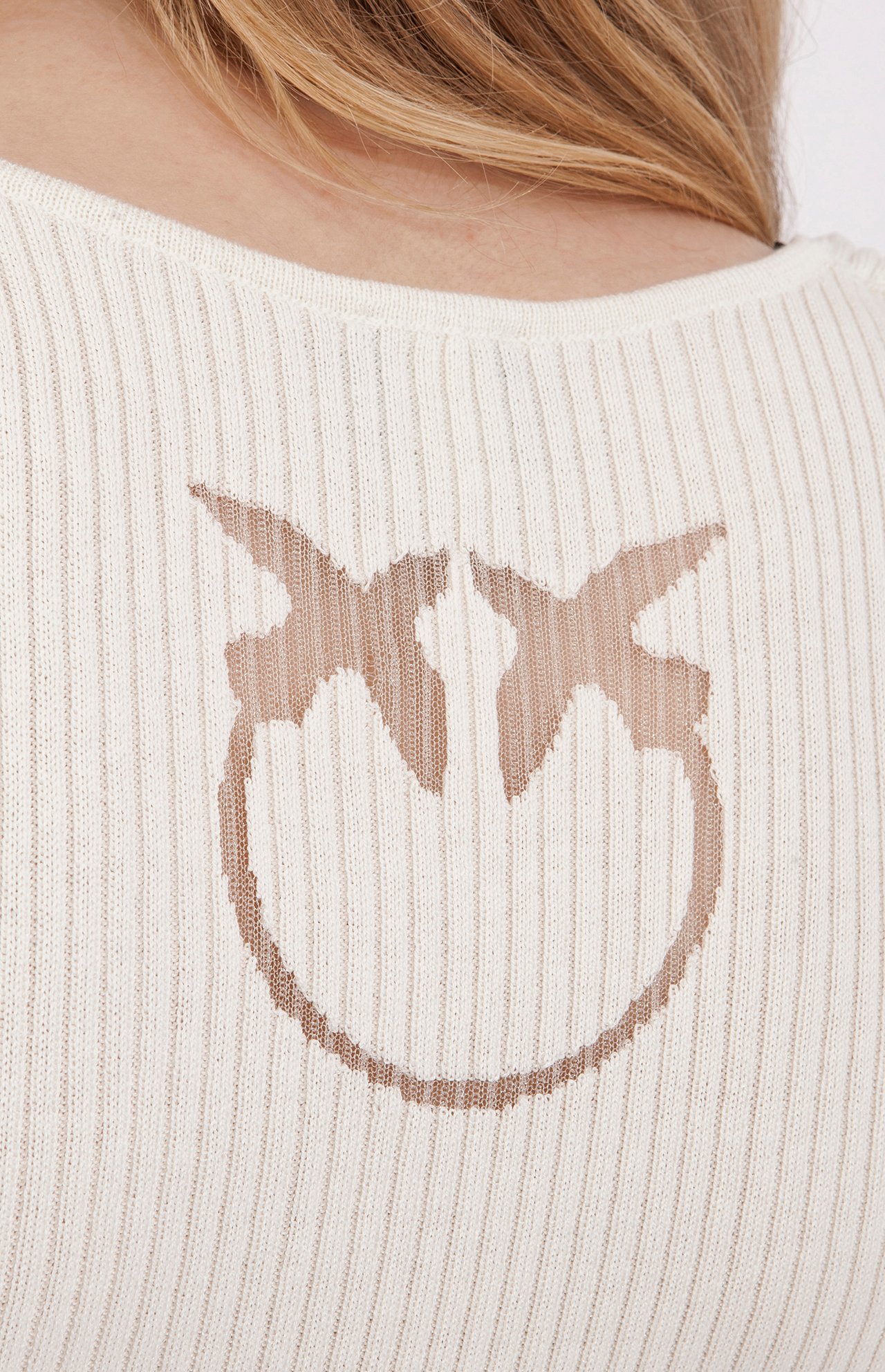 Top marki Pinko to elegancka propozycja dla kobiet ceniących nowoczesny minimalizm z modowym akcentem. Wykonany z miękkiej, prążkowanej dzianiny, zapewnia nie tylko komfort noszenia, ale również podkreśla sylwetkę dzięki dopasowanemu fasonowi. Klasyczny, głęboki dekolt w kształcie litery V dodaje kobiecego charakteru, a uwagę przyciąga subtelne logo umieszczone z tyłu wykonane z przezroczystej tkaniny. Top doskonale sprawdzi się zarówno w casualowych stylizacjach z szerokimi spodniami czy jeansami, jak i jako element eleganckiego zestawu pod marynarkę.